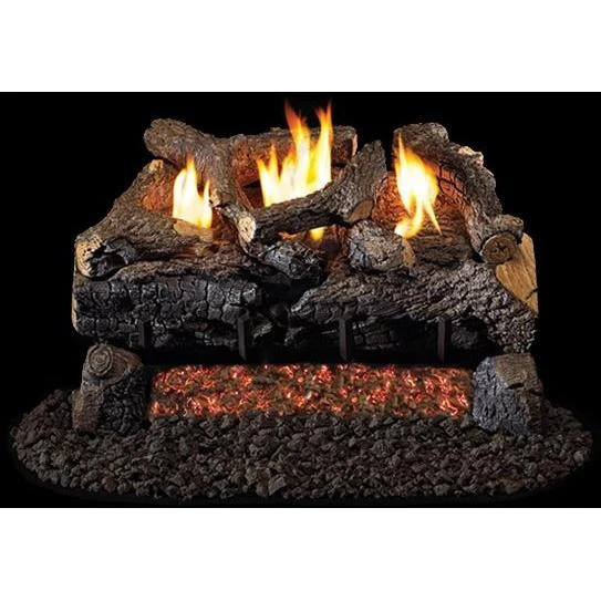 This Peterson Real Fyre gas log set includes: Ceramic Refractory Vent Free Gas Logs, ANSI Certified Vent Free Burner with Pre-assembled Control Valve and ODS Safety System, Custom Grate, Connector Kit, Glowing Embers, Bryte Coals and Lava Granules.